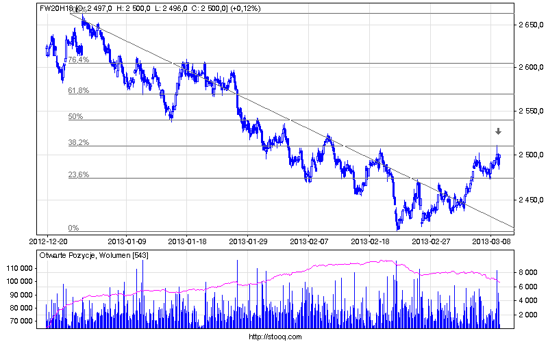 Zatrzymaliśmy się w dość ciekawym miejscu na fibonie 38,2 jego ewentualne przejście pozwoli na atak na 50%, zapewne nie od razu ale po chwili oddechu: