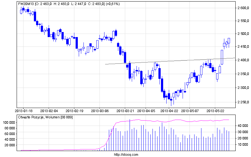 Niby rośniemy zgodnie z prognozami ale wyjścia górą poza kanał siła rzeczy ograniczają potencjał i wydaje się że powoli walimy głową w sufit (okolice 2500 to 61,8 zniesienia całej ostatnie zwałki od początku roku).
