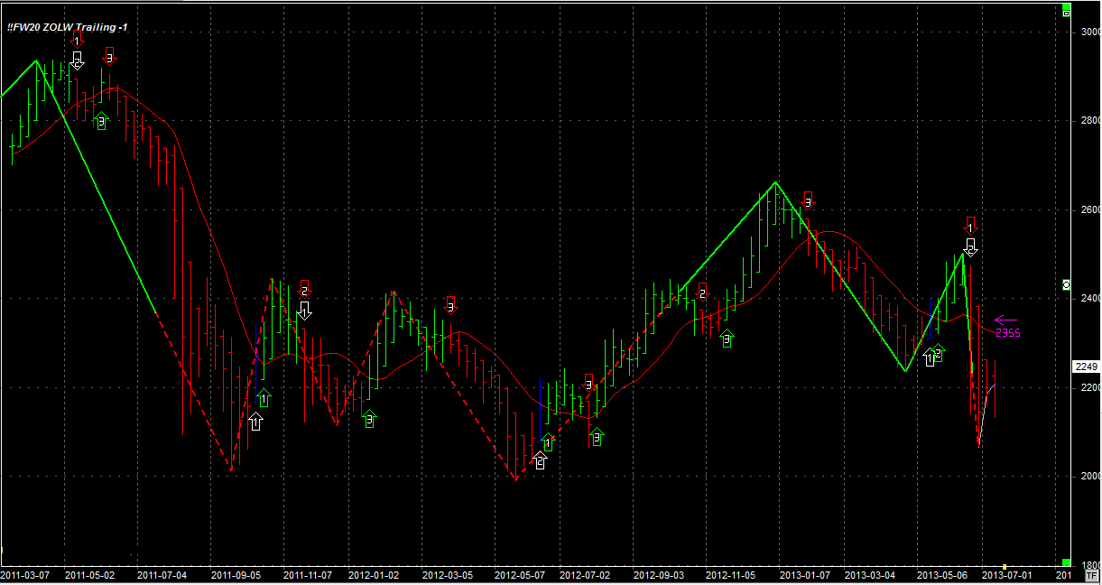 Tydzień zamknął się na poziomie 2249 pkt, 60 pkt wyżej niż tydzień temu. System utrzymuje 1 krótką pozycję po 2165 pkt. Stop na poziomie 2355 pkt.