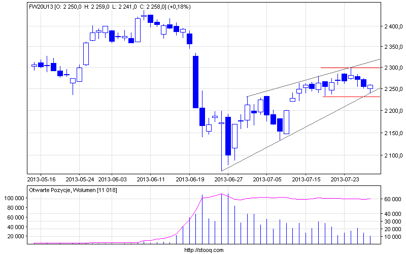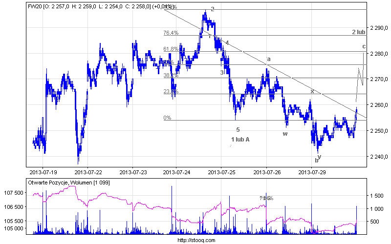 Patrząc z dalszej perspektywy widać, że już trzeci tydzień bujamy się w przedziale 2220-33 pkt od dolu 2297 pkt od góry. Wydaje się, że dopiero wyjście poza ten obszar mogłoby dać impuls do większego ruchu, najlepiej niech wyjście to będzie poparte zauważalną aktywnością, inaczej będziemy świadkami kolejnej ściemy i powrotu do marazmu z którym przyszło się nam obecnie użerać.
