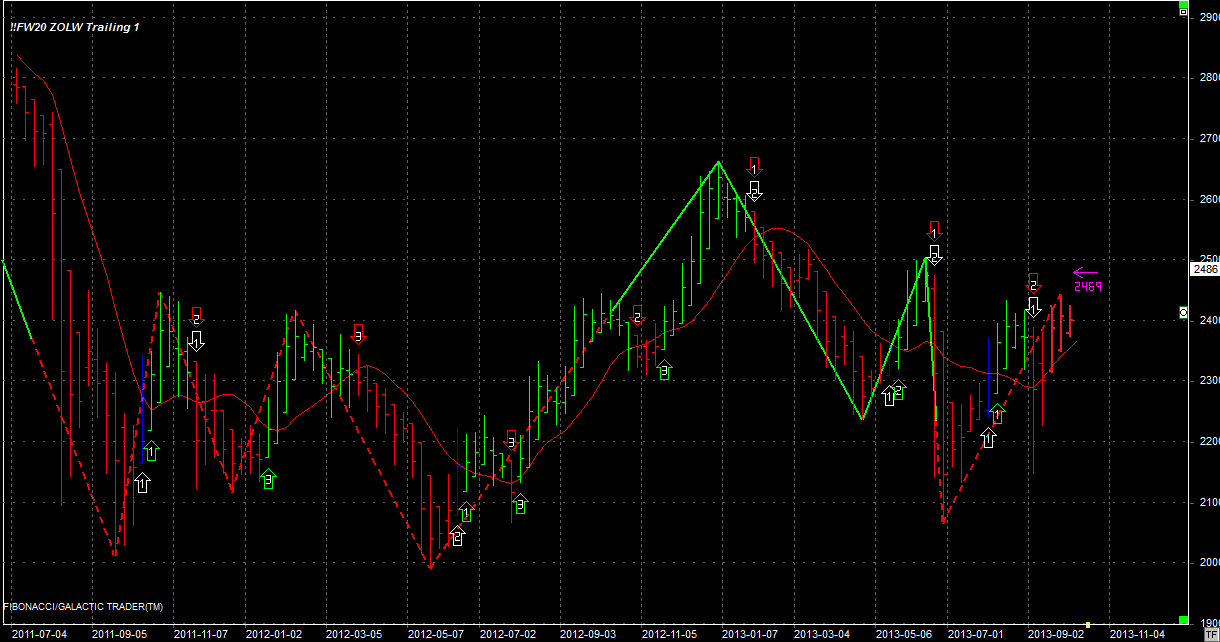 Tydzień zamknął się na poziomie 2393 pkt, 32 pkt niżej niż tydzień temu. System utrzymuje 2 krókie pozycje po 2237 pkt. Stop na poziomie 2469 pkt.