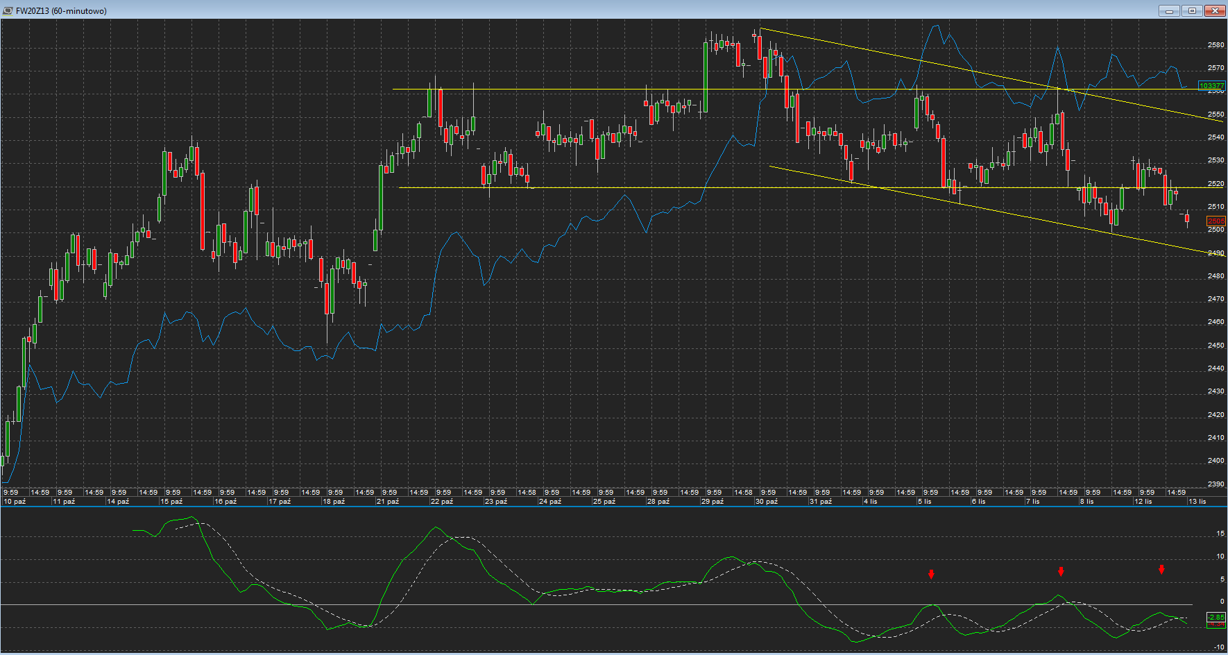 Należy zwrócić uwagę na spadające ceny miedzi trwające od paru dni, co przekłada się na KGH i później na sam WIG20. Miedź jest teraz na wsparciu, po jego przełamaniu ma szansę na spadek o drugie tyle, co do tej pory. No chyba, że wytrzyma wsparcie...