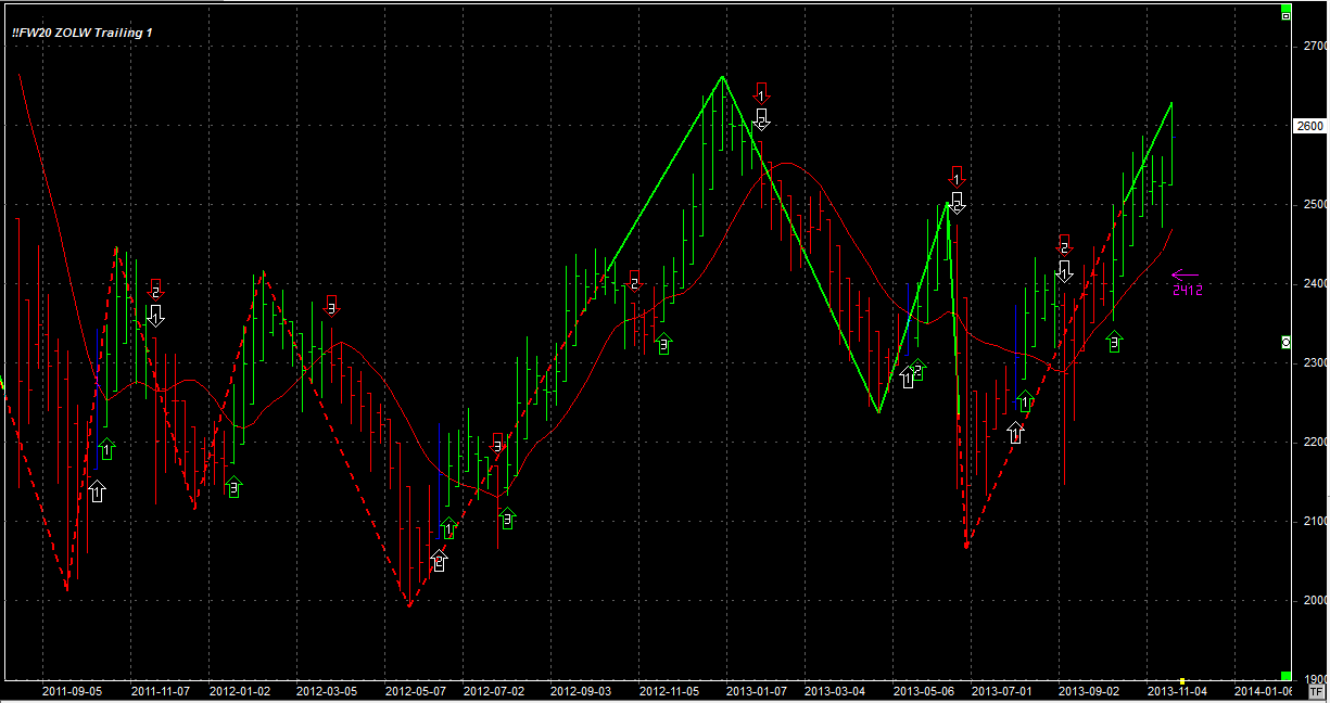 Tydzień zamknął się na poziomie 2600 pkt, 45 pkt wyżej niż tydzień temu. System utrzymuje jedną długą pozycję po 2486 pkt. Stop na poziomie 2412 pkt.