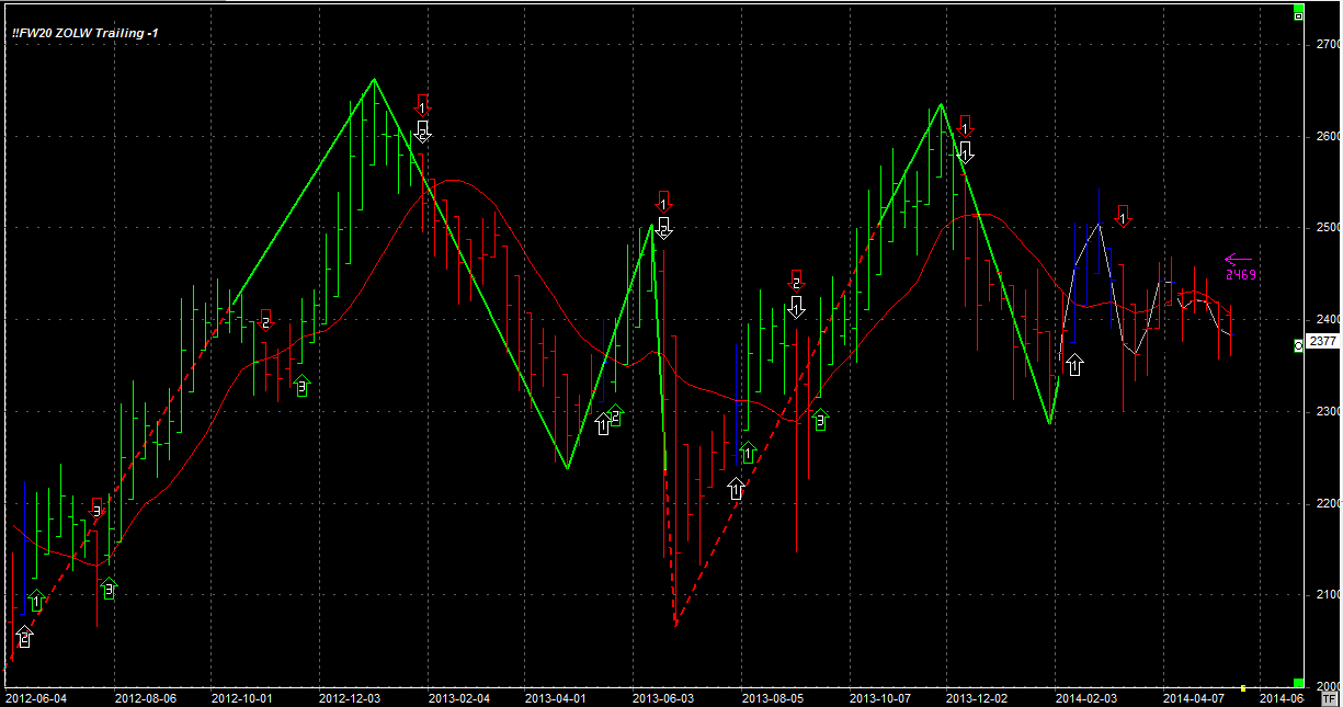 Tydzień zamknął się na poziomie 2377 pkt, 5 pkt wyżej niż tydzień temu. System utrzymuje pozycję krótką 1 szt, po 2345 pkt. Stop 2469 pkt.