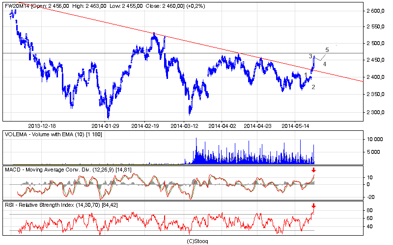 Wybicie spadkowej ładnym długim białym korpusem na zdecydowanie wiekszym niż ostatnio obrocie plus ładowanie lopu zgodne ze strukturą ruchu dobrze świadczy o bysiach na najbliższe sesje (o ile ktoś nie zasypie tego grajdoła). Naturalnie w takim tempie nie da się cały czas iść do góry - na wykresie futa 1h widac gdzie są wskaźniki. Zakładam chwilę oddechu przed atakiem na poważny opornik - ukraińską lukę na 2469. Propozycja ruchu na wykresie.
