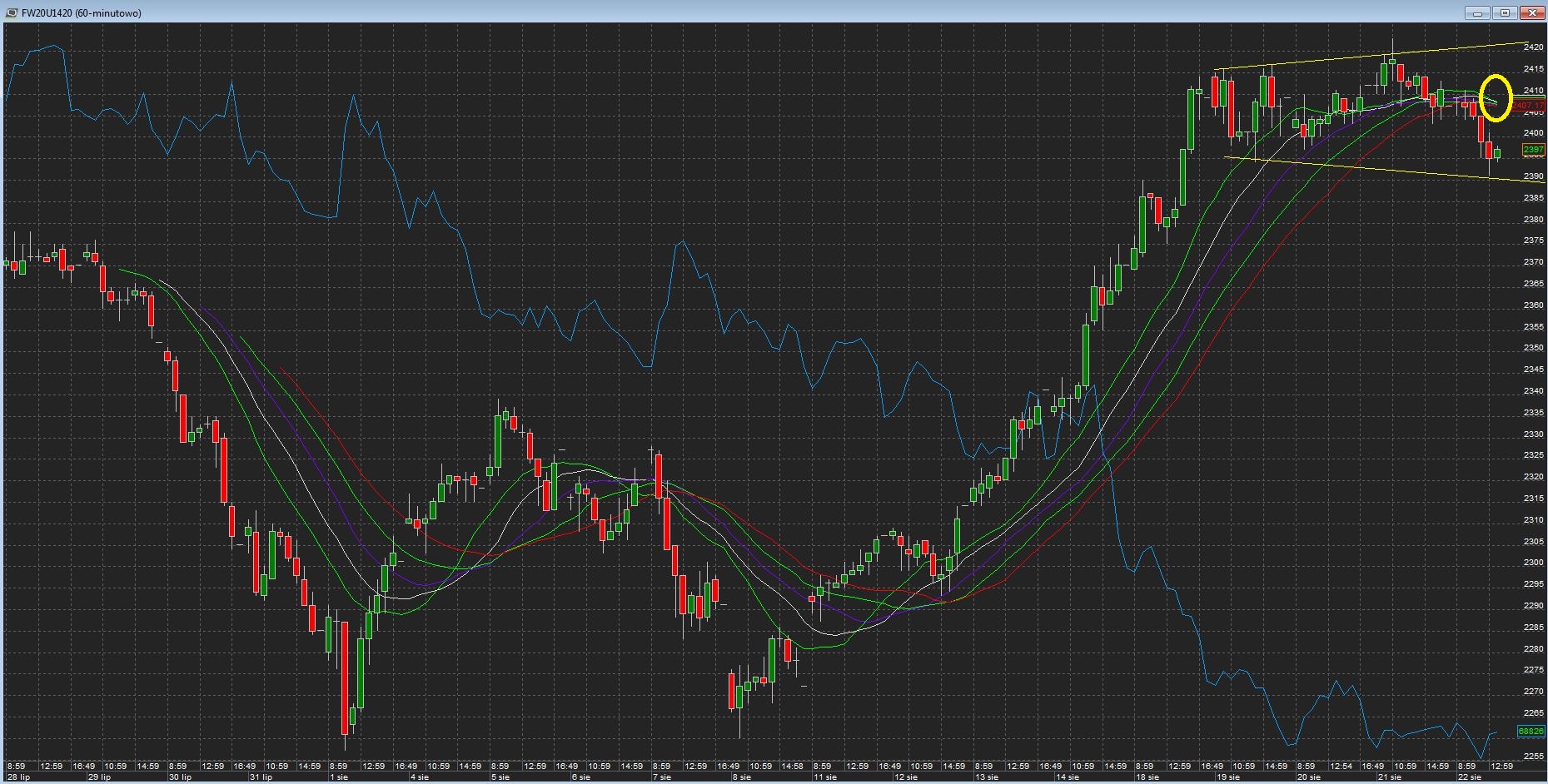 Na razie wygląda to jak skromna korekta tego co wzrosło - po ostatnich dywergolach na 1h kreślimy trójkąt na dziadowskim obrocie plus dzisiejszy brak kontynuacji zejścia po naruszeniu wsparcia 2394, intra spadający lop na spadku, rosnący na wzroście. To daje nadzieję na jeszcze jakiś atak up na kreske spadkową day widoczną z szerszej perspektywy.