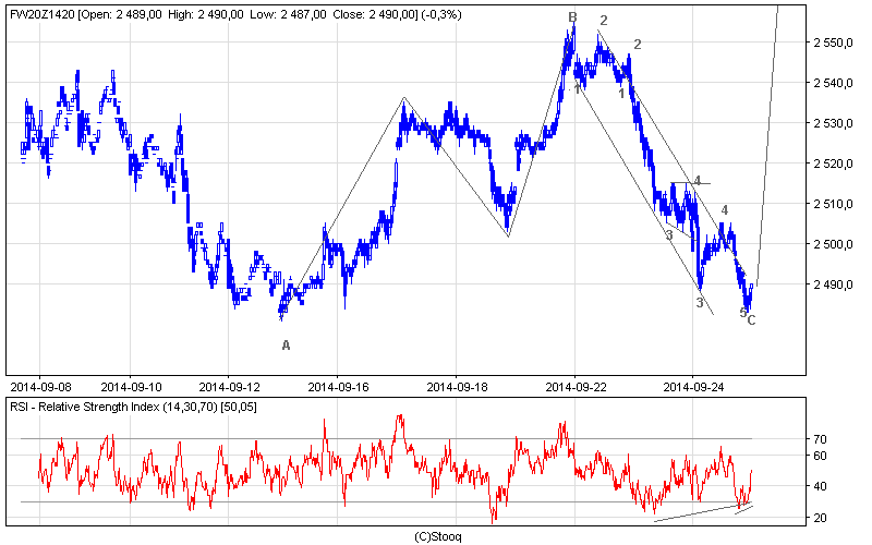 Czas na co najmniej korektę, jeśli przyjąć, że impuls spadkowy to fala 1, albo na nowy szczyt jeśli przyjąć wersję z obrazka.