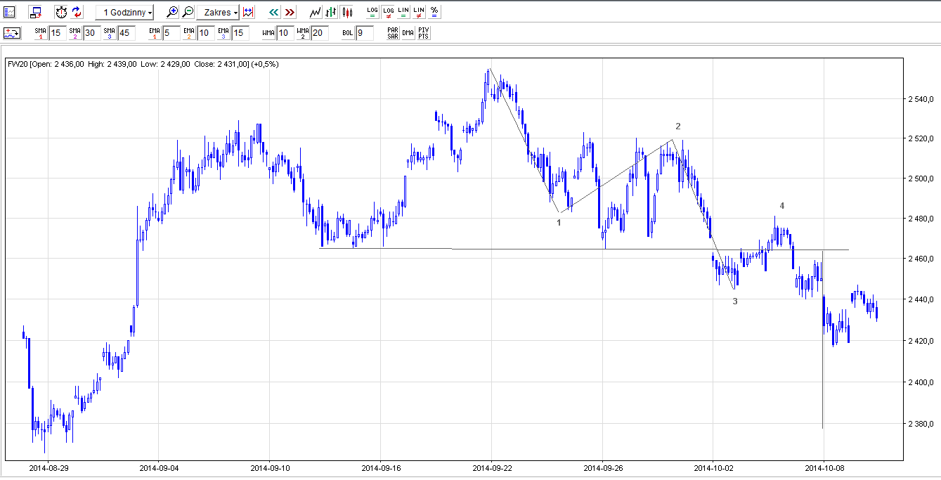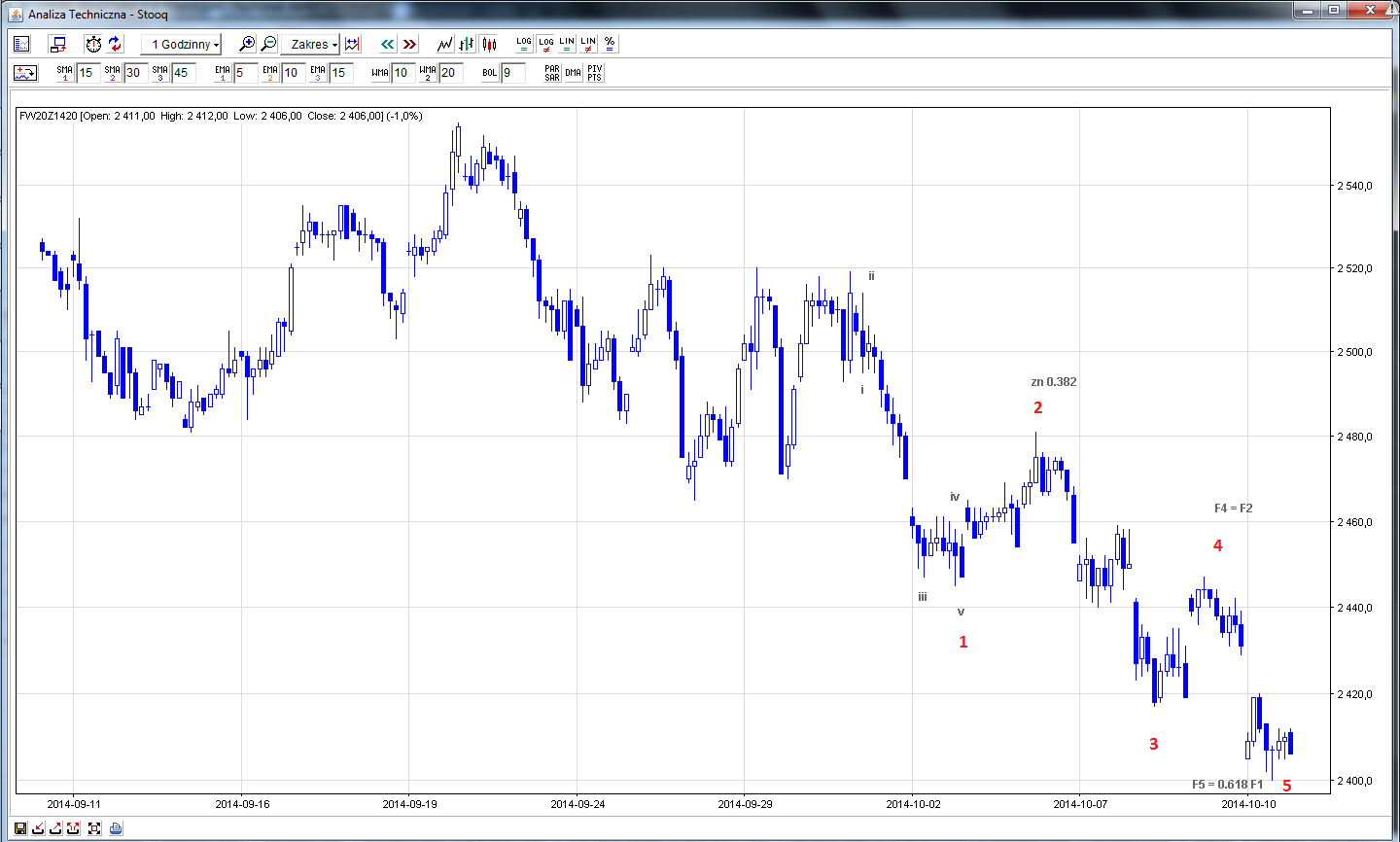Dodatkowo zniesienie całego impulsu wychodzi obecnie pomiędzy 50-61,8% - czyli nijako. Natomiast poziom 61,8% ląduje w 2 380.