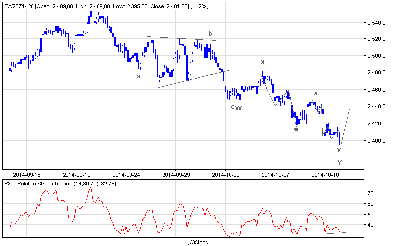 spadki na F'SPX nie wróżą nic dobrego na poniedziałek :roll: pocieszające jest to, że dobrnęli do ważnego poziomu z 08.08. więc skoro GPW tak ładnie idzie śladami ichniego rynku, to może i GPW dociągnie do wypatrywanego poziomu 2 385, bo miejsca F5 jeszcze ma, właśnie w okolice 2 380 (a że to Fut, to może być +/-5 co by odpowiadało Z=200% pierwszej fali W)
