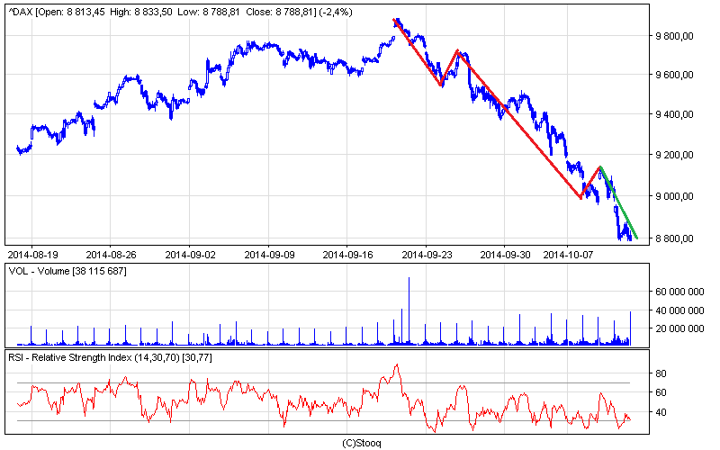 Ruch spadkowy uważam za zakończony, czas na odbicie. IMO na 9400. Widać, że mamy zmianę trendu. Rynek rysuje 5-tki w dół.