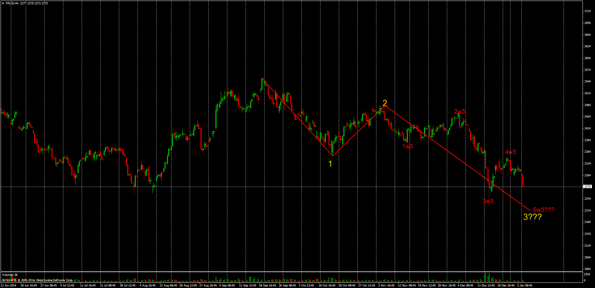 Znów skrócony tydzień, zagranicy nie ma, miejscowi na długim weekendzie - trudno oczekiwać znaczących zmian, jeśli już to będą raczej przypadkowe. U góry 2350 pkt, na dole 2305 i kolejne 50 pkt stoi otworem - na wykresie fut 1h.