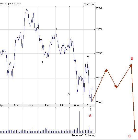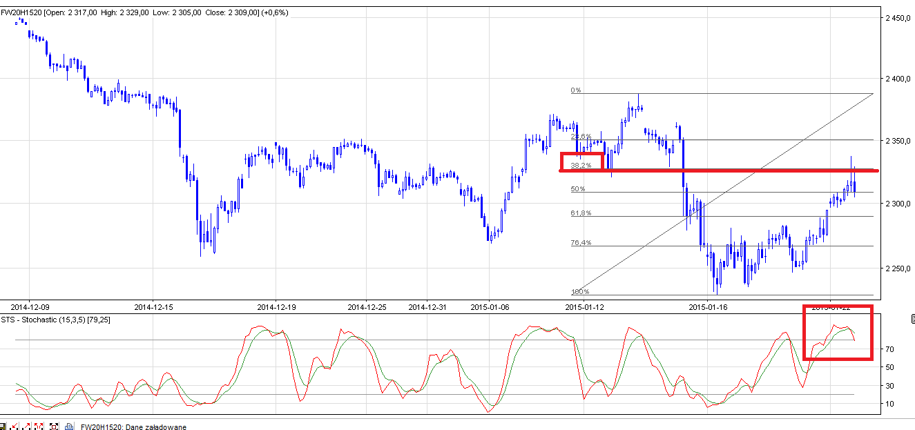 Dzisiaj sądzę że maksymalnie możemy podejść do 2315, a więc do połowy korpusu pamiętnej czwartkowej świecy, ale szczerze w to wątpię.