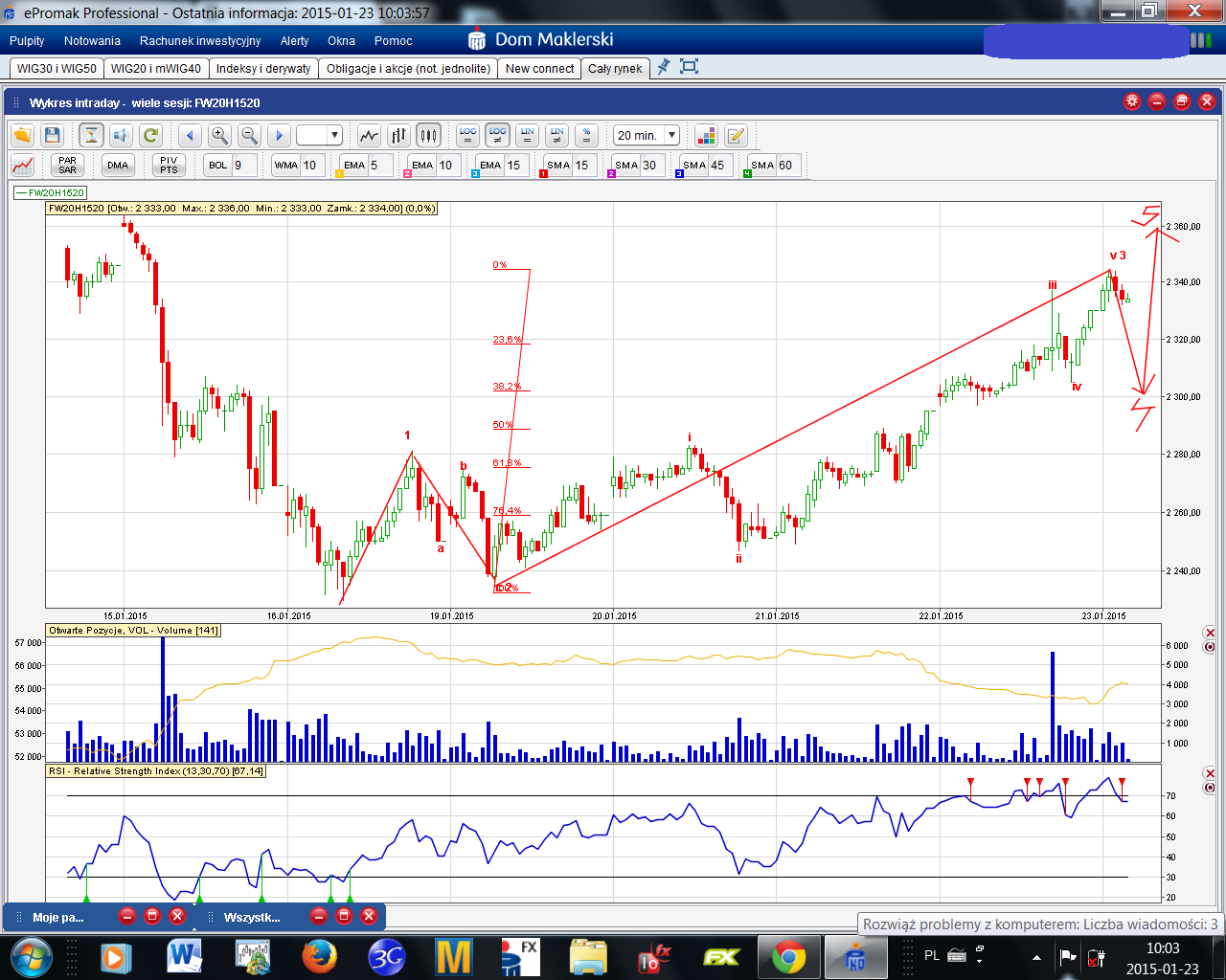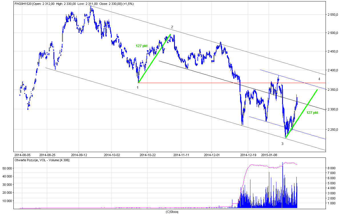 Aktualne spojrzenie, zakres 2350-68 pkt wydaje się kluczowy dla rozpiski korekcyjnej - na wykresie fut 1h.