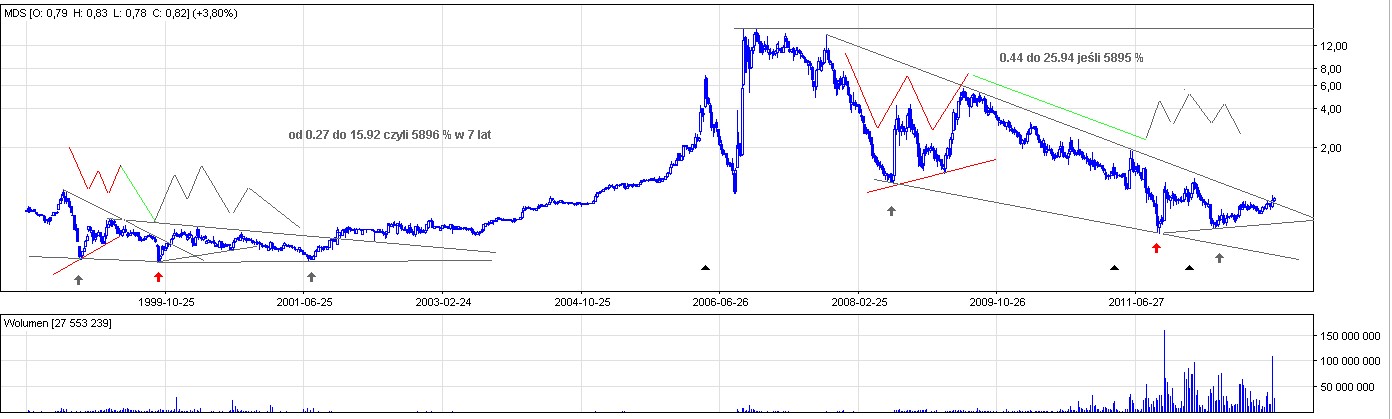 Idziemy podobnymi strukturami, wszystko widać na wykresie (interwał tygodniowy) Może nie jest to 1:1 ale podobieństwa są istotne. Najważniejszy jest fakt że po wygrzebaniu się z trójkąta mieliśmy ładny up, miejmy nadzieję że po wygrzebaniu się z klinika (co obecnie robimy) będziemy mieli również.