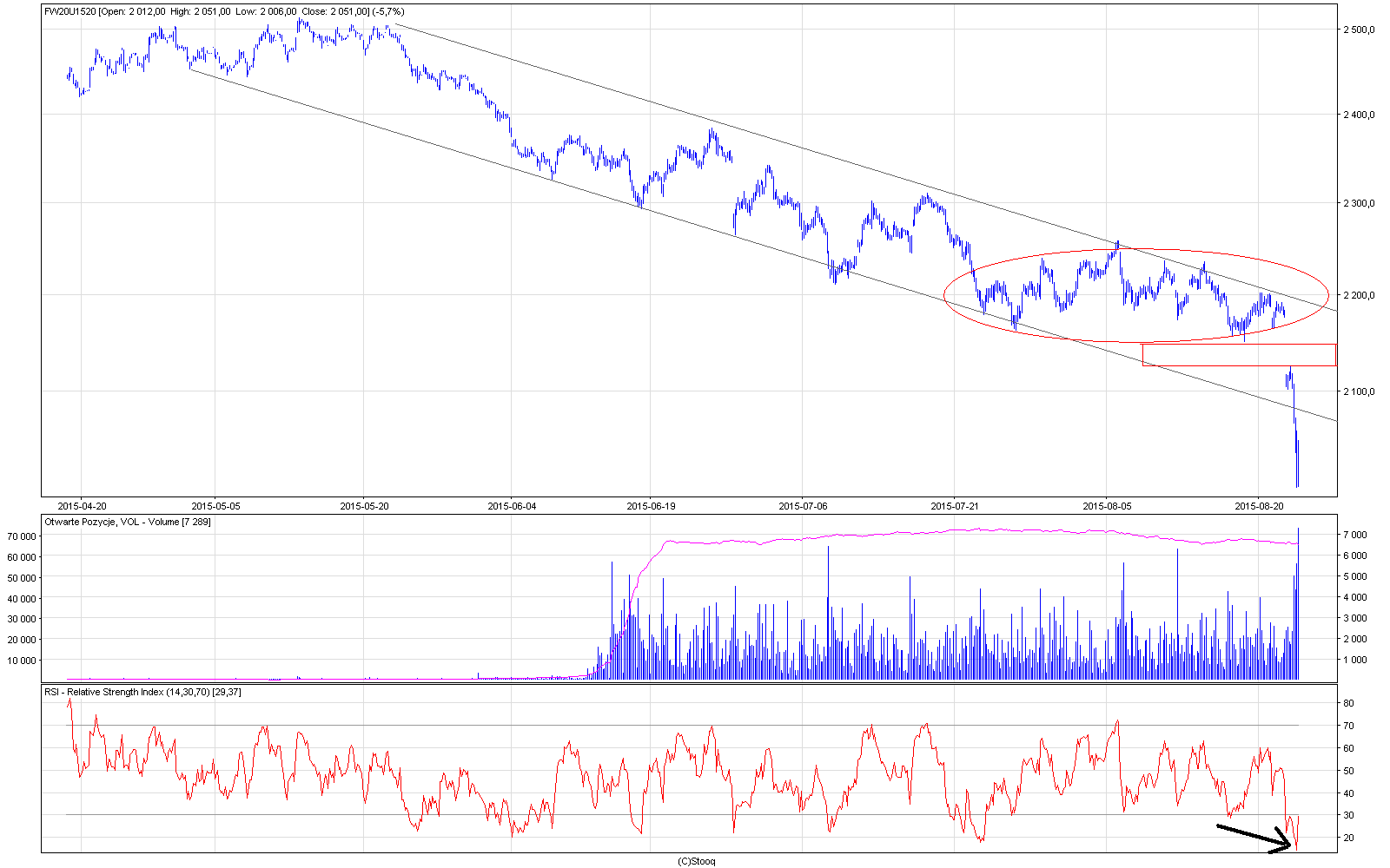 Tak ładnie lazło w kanale i się wybiło :) Kreski mowią wszystko, extremalnie wyprzedane krótsze wskazniki (strzałka na wykresie) dały odbicie ale jak na razie to tylko korekta. Oporniki to luka, konsola i non stop kanał.