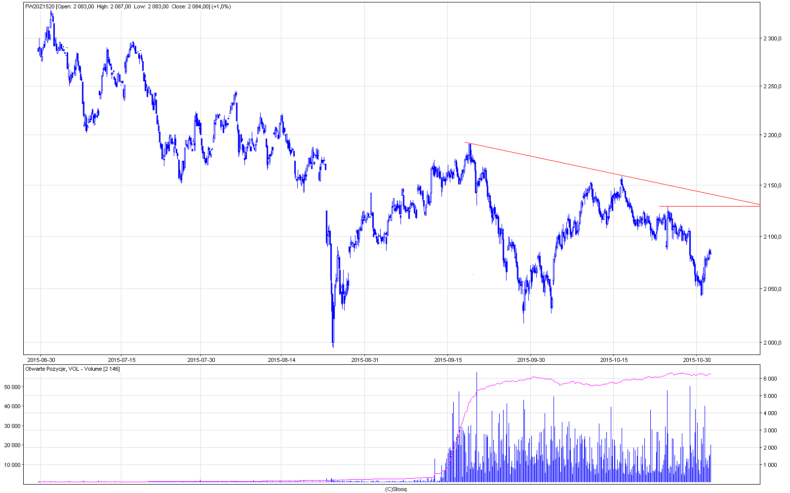 Ja gram pod taki scenariusz: środa-czwartek wig20 w okolicy 2100 i staję z boku. Na ten moment nie wiadomo czy kreśli się trójkąt czy odwrócony rgr.