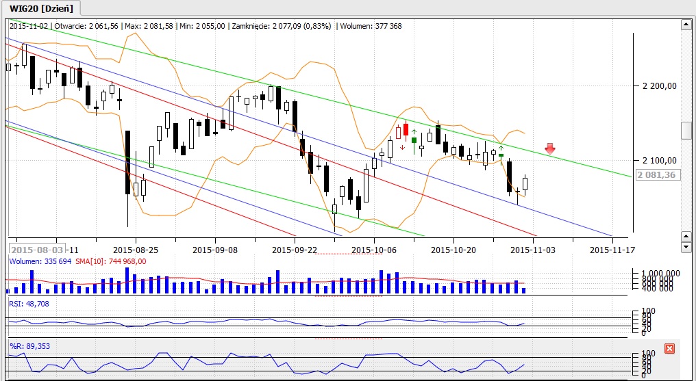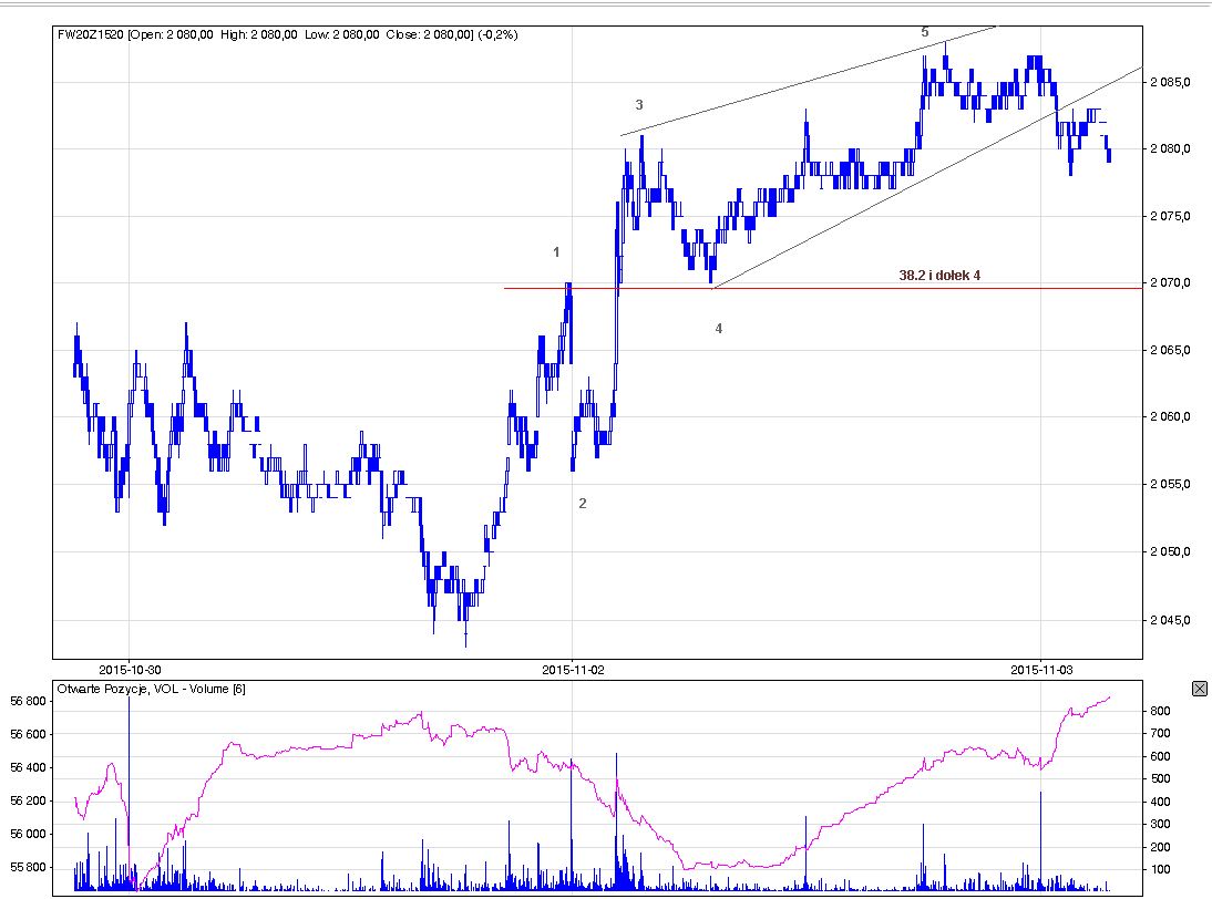 Ja widzę to tak. 2087 to silny opór, możemy go na kilka punktów przekroczyć, może w okolice 2092. Potem powrót w okolice 2015. Zadzwiają mnie usiaki, ale wpływ tamtej giełdy na naszą jak widać jest znikomy...a i tam nie sądzę, żeby dobili do szczytów, dziś max jutro będzie tam realizacja zysków lub zwałka. Tak to widzę.