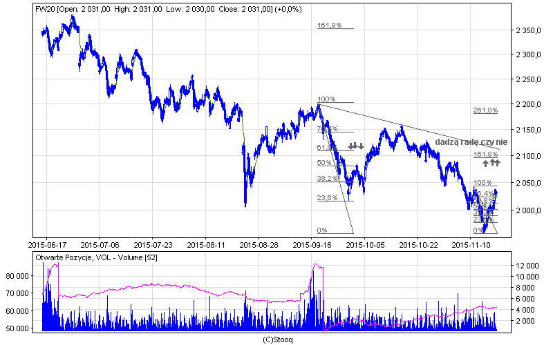 Zgodnie z poprzednimi konecepcjami nadal (korekcyjnie) rośniemy. Najbliższe zasięgi i kluczowe zniesienia na wykresie instrumentu bazowego.