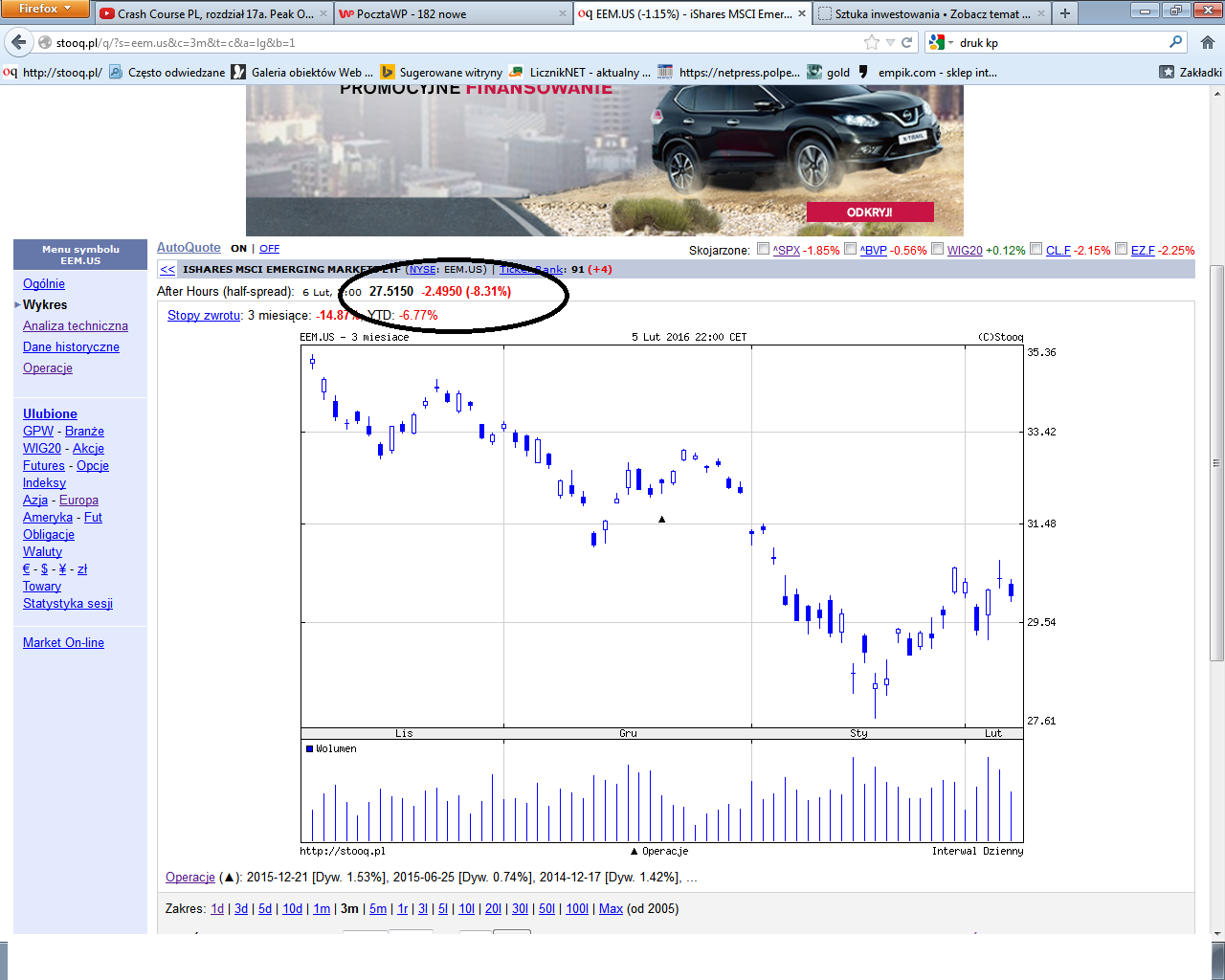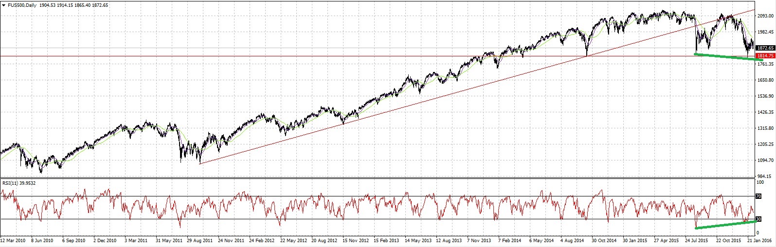 Pierwsza okazja do zarobku na S za nami na S&P i DAX, również daje szanse jakiemuś globalnemu odbiciu w lutym od ostatnich dołków, ale zgodnie z obrazkami S&P w średnim terminie weszliśmy w rynek niedźwiedzia, czekam na katalizator który uruchomi spadki po 3-5% na S&P i DAX, którymi prawdopodobnie przebijemy te wsparcia na ktorych jestesmy teraz i warto wtedy wykorzystać okazje i mieć odpowiedni "mind set" pod big short.