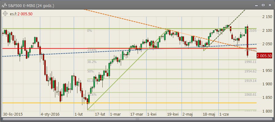 Ciekawe, że jednak USA przejęły się Brexitem. Teraz szybka realizacja zysków, a potem - w miarę pojawiania się informacji o skutkach wyjścia - powoli w dół.