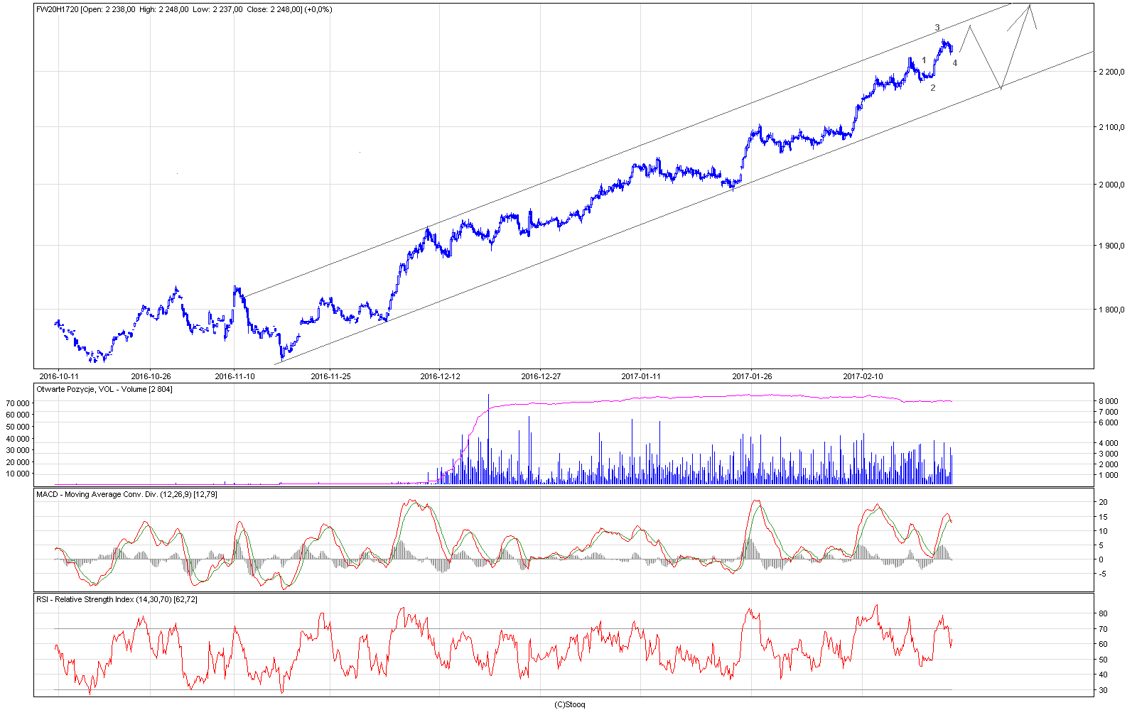 W najszybszej perspektywie intra zejście trójką i jak na razie udana obrona 27-30 pozwala mieć nadzieję na zakończenie 4 i próbę ataku na dotychczasowe maksy jako 5 (w obecnej fali up). Później wypadałoby się coś skorektować. Dopóki kanał w grze biedy dla longa nie ma a amatorom szorta pozostaje łapanie szczytu.