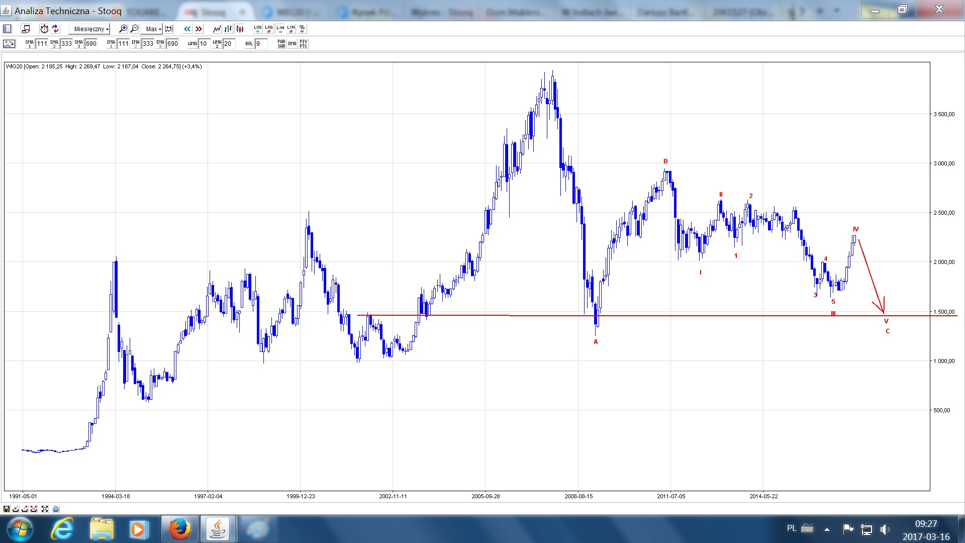 hossafan napisał(a):Moim zdaniem wzrosty od grudnia były zbyt silne i nas zbyt dużych obrotach żeby to mogła być 4, nie mówiąc już o tym, że nie może zachodzić na 1. To raczej powinna być jakaś rachityczna trójka albo struktura nieregularna. Dla mnie ewidentnie to jest pierwsza fala nowej hossy. Inna sprawa jak głęboka będzie korekta tej fali. Marzeniem byłoby zejście do 1850 żeby wszyscy spóźnialscy mogli się zapakować na falę 3, ale czy rynek będzie aż tak łaskawy?