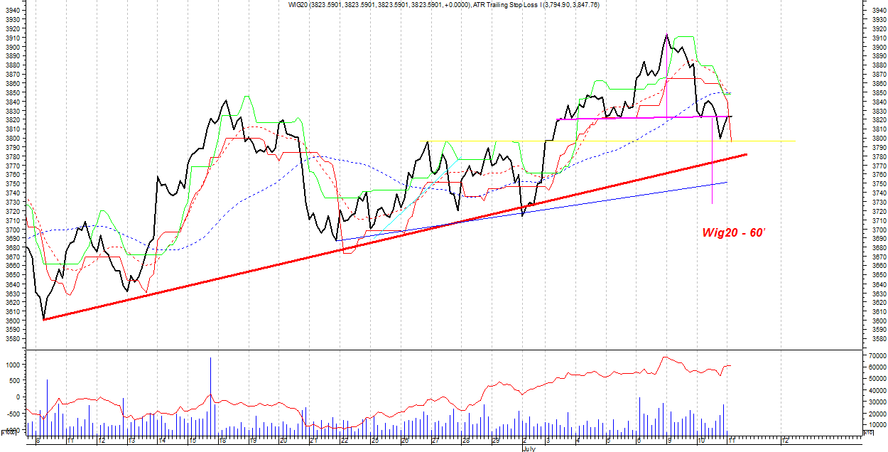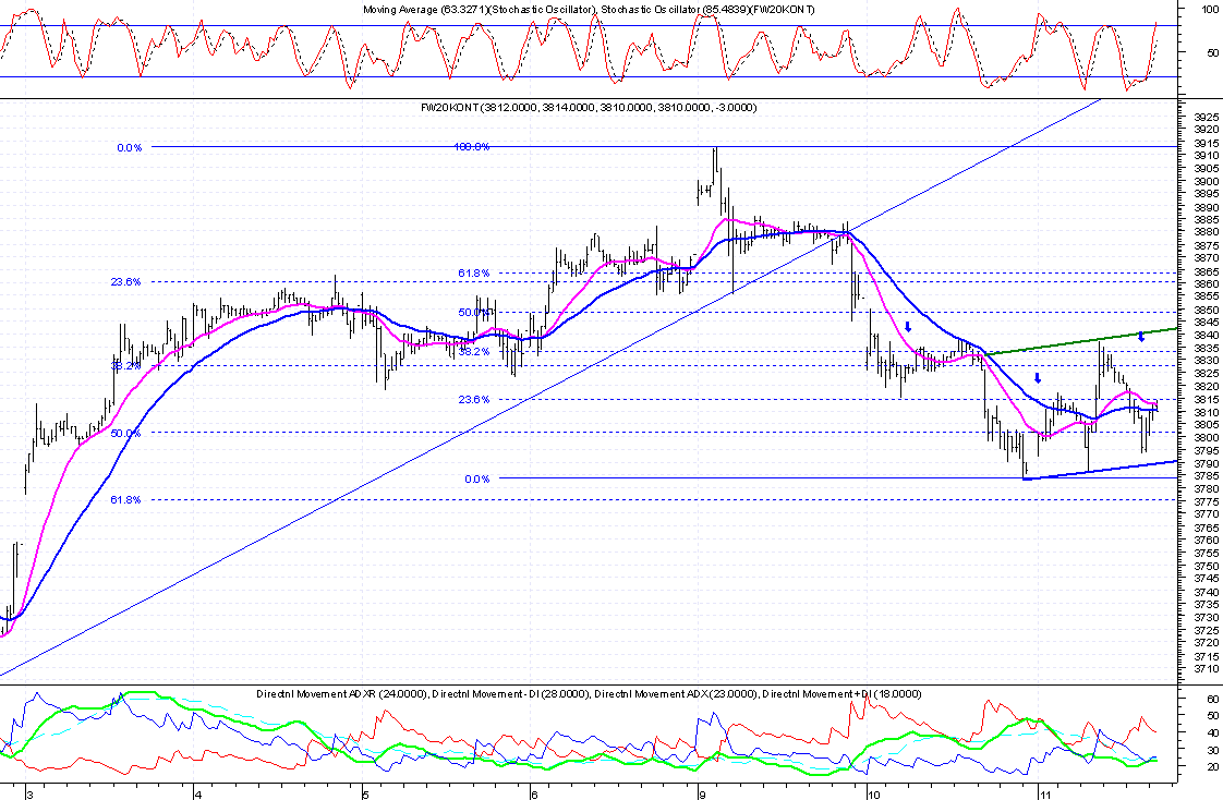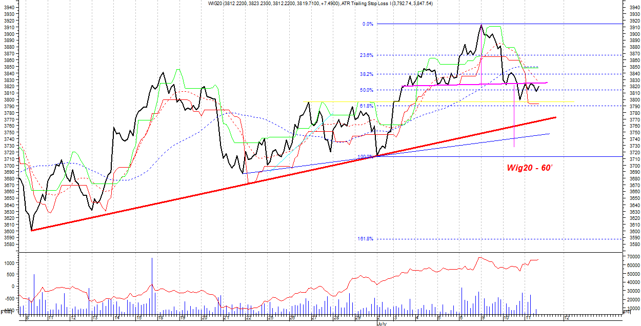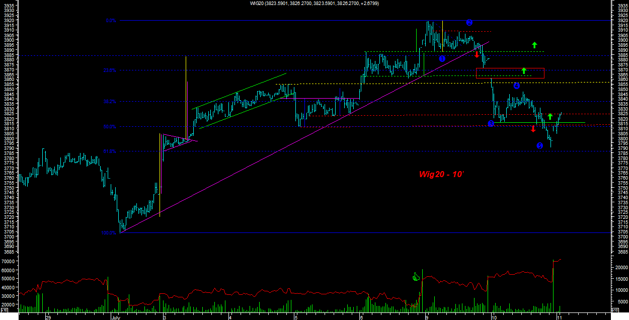 wspomniany wczeÂniej poziom zosta? osi?gniŕty pomimo za?amania orgr, gdyz byki dosta?y kolejn? szansŕ tworz?c podwˇjne dno. na poziomie 3816-3840 mozliwa jest konsolidacja, poziom obrony poni?ej.