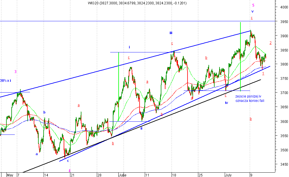 Jako ?e struktura pierwszej fali ma pi੠podfal korekta musi mieŠ dalszy ci?g. Czy rozwinie siŕ w piŕciofalowy impuls (oznaczenie na W20) czy trˇjfalowy zigzag (oznaczenie FW20) czas poka?e.