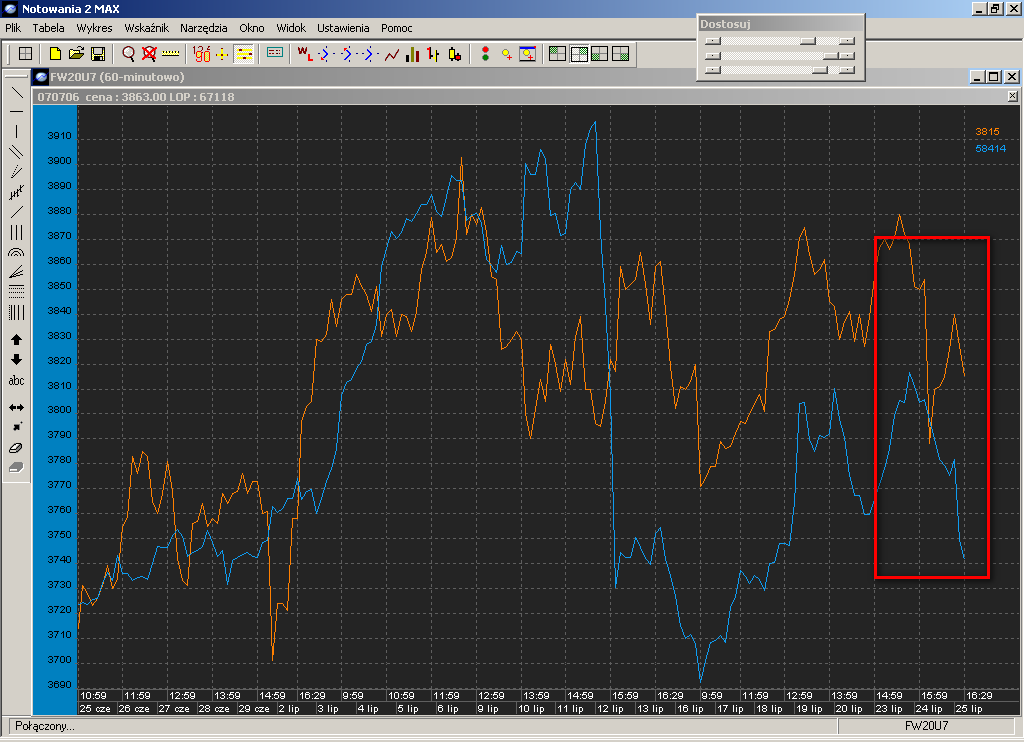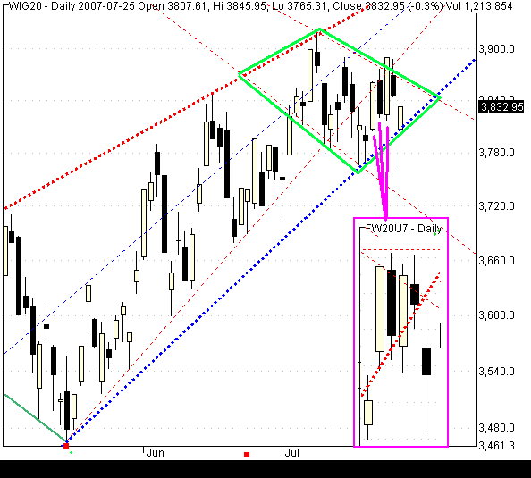 Generalnie na skrzy?owaniu siŕ klinˇw (zielona obwˇdka) mamy sytuacjŕ Âwiecow? podobn? do otoczenia minimum "diamentu" z maja.