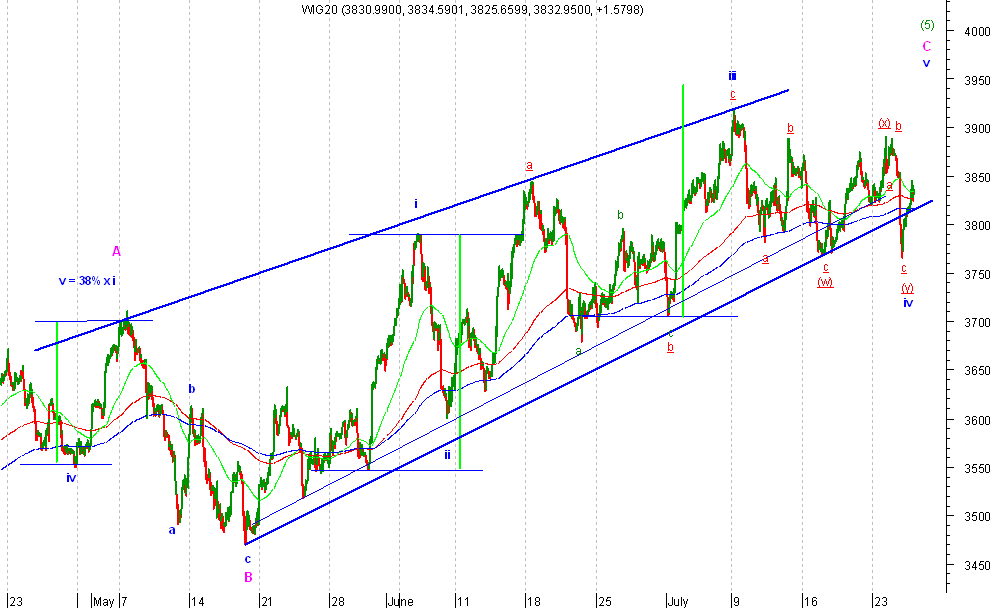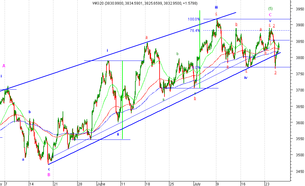 Jak pisa?em zejÂcie indeksu poni?ej 3770 mo?e anulowaŠ znaczenia prezentowane dotychczas. Dzi minimum sesji to 3765 wiŕc poprzednie dno nie mog?o byŠ ko˝cem fali iv.