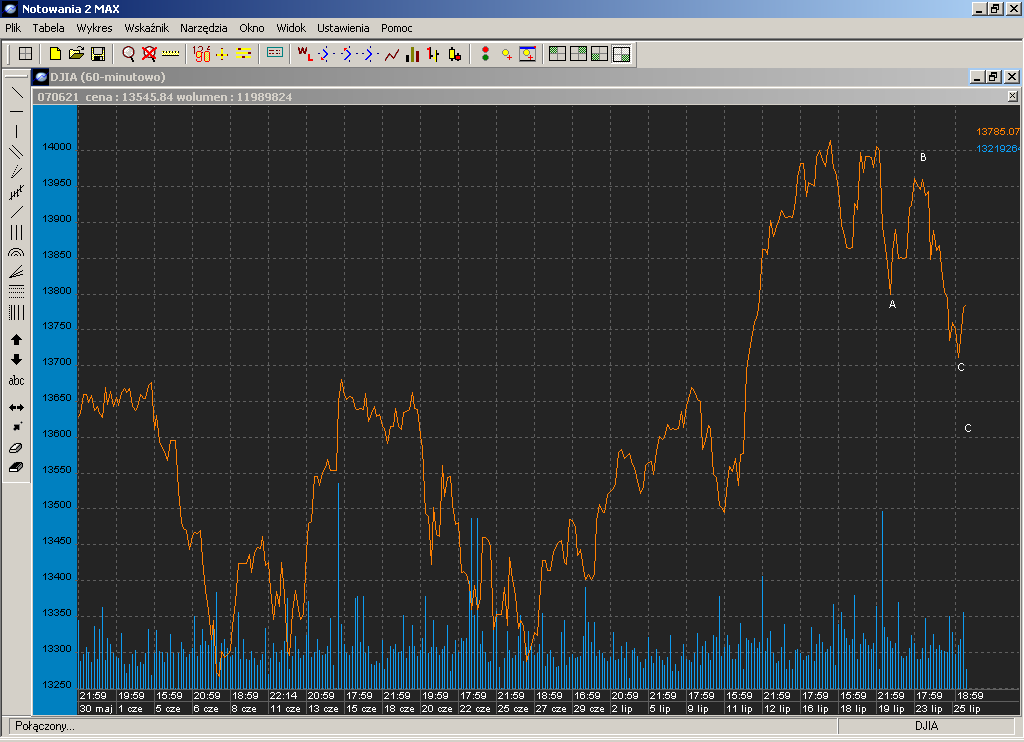 Nie zadam sobie trudu liczenia fibkˇw ale na DJIA mamy przyk?ad ksi??kowy korekty p?askiej ,trˇjeczki up i fali c zig zag czy ju? koniec zig zaga czy jeszcze pi?tka na dˇ? zobaczymy dzisiaj :mrgreen:Ja nadal czekam na 3760 na w20 :lol: