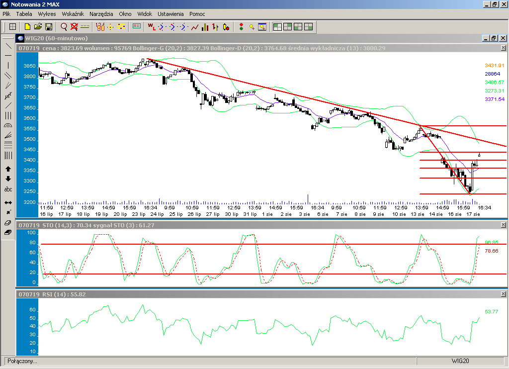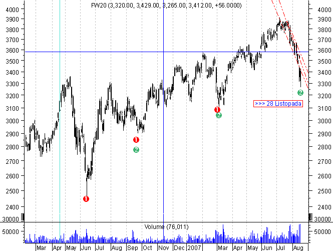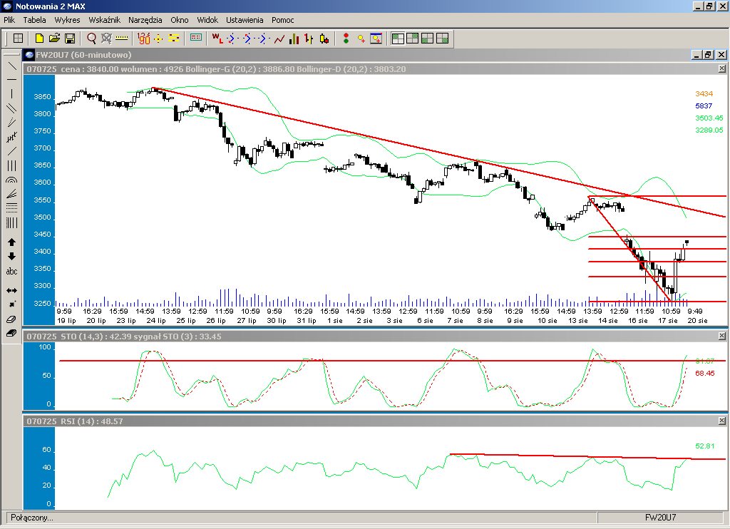 Wci?z jestesmy w krotkoterm. trendzie spadkowym, dzisiaj az do 3510 (cienka czerwona)!