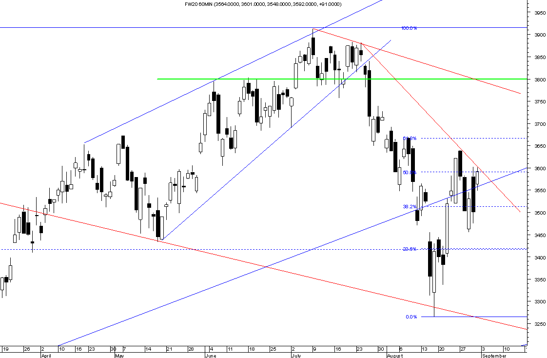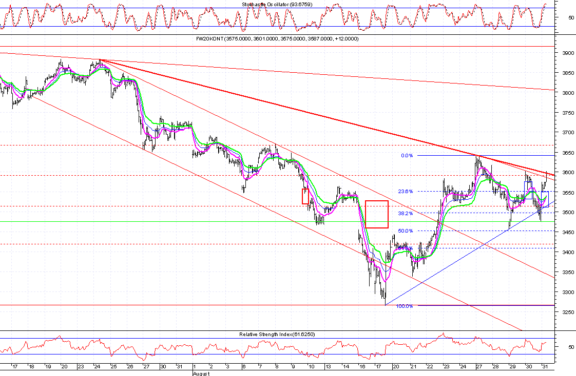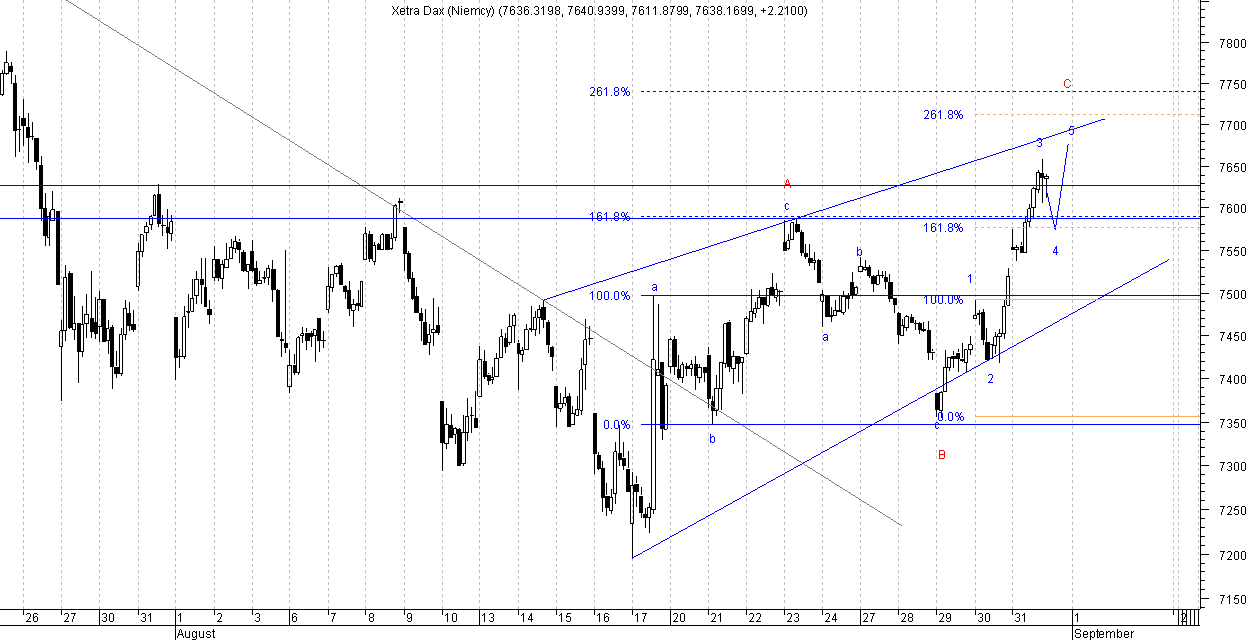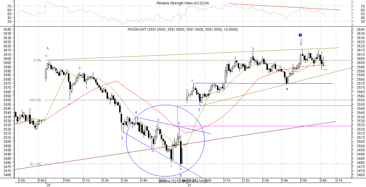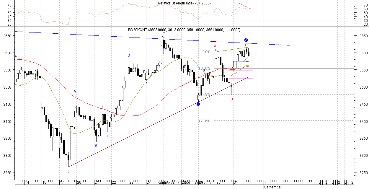 Nie przyj??em, ?e w fala 2 spadkowa, mo?e byŠ bardziej z?o?ona. Za?o?y?em, ?e szczyt 3602pkt z 10rano 30sierpnia jest ju? ko˝cem fali 2. Okazuje siŕ , ?e to dopieo falka A z?o?ona z abc.
