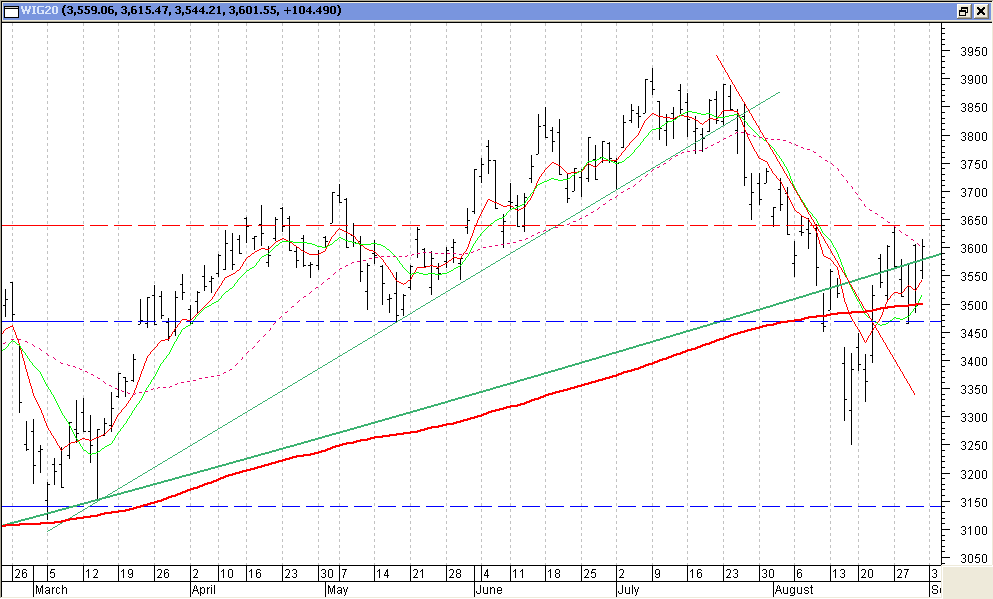 witam... tak przygladma sie tym kilku sesja w tym tygodniu to dochodze do wniosku..ze wszlismy,,, w trend...boczny bedziem sie buja jak tralal w zakresie...3500-700 :)