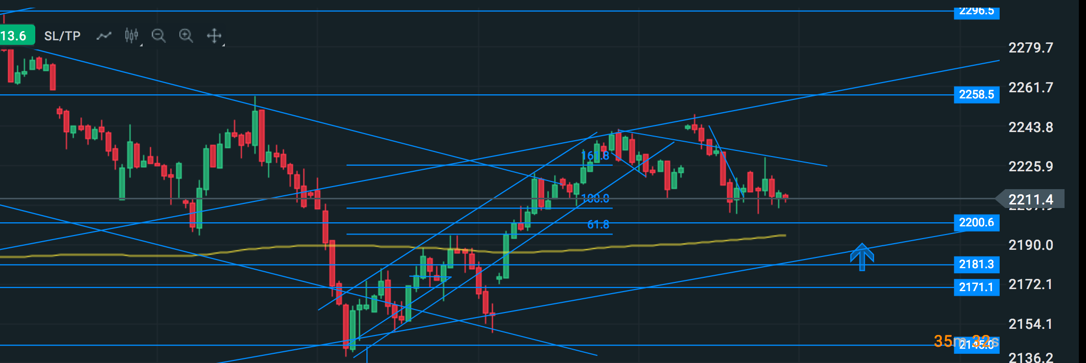 Wypadałoby wrócić ponad 222x aby to miało ręce i nogi dla longa bo jak na razie w 1h blokują dwie średnie + dwa kanały + zamknięcie luki + czarna swieca day + spadający lop.