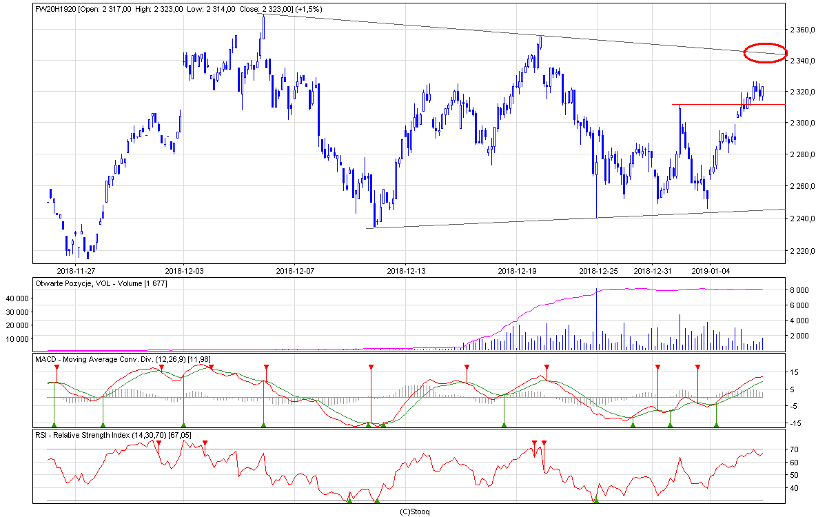 Kontrakty mają prawo bezpiecznie dla dalszych wzrostów zejść do 2300. Być może spadek zostanie zatrzymany wyżej.