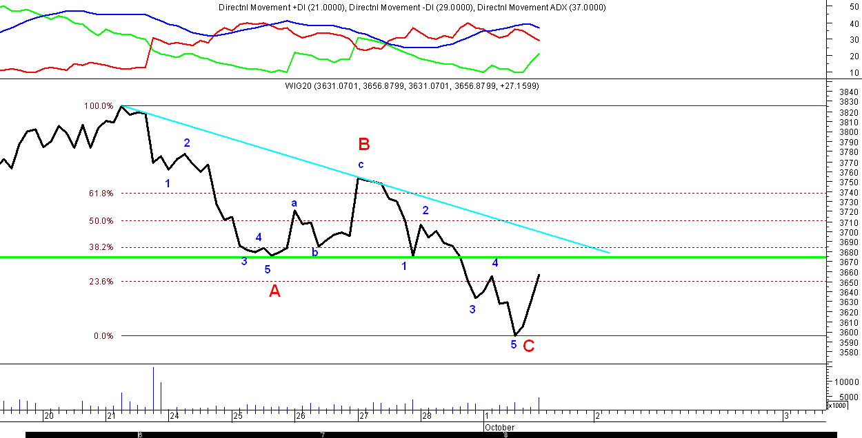 MyÂlŕ ?e taki scenariusz ma szanse zaistnieŠ w przypadku pokonania lini trendu spadkowego poprowadzonej po szczytach z 21.09 i 27.09.