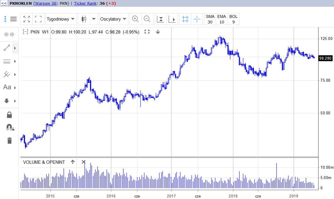 Jak uważacie, jakie są szanse na zejście kursu w najbliższym czasie do poziomu 77PLN (szczyt 2015, dołek 2018)? Pytam w związku z akcją zniżek na stacjach Orlen dla posiadających pakiet akcji. https://bossa.pl/oferta/orlen-w-portfelu