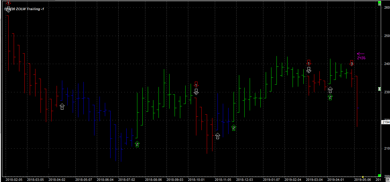 02.05.19 stop & revers 3 szt. po 2319 pkt.; strata z pozycji 2 x 39 pkt.;
