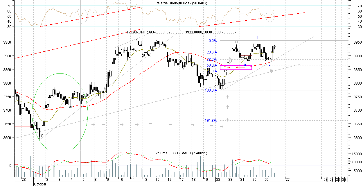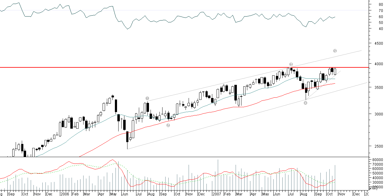po przejściu 3957-60pkt do zebrania jest ok 200pkt. Mniej więcej tyle brakuje do górnego ograniczenia trendu na weekly.