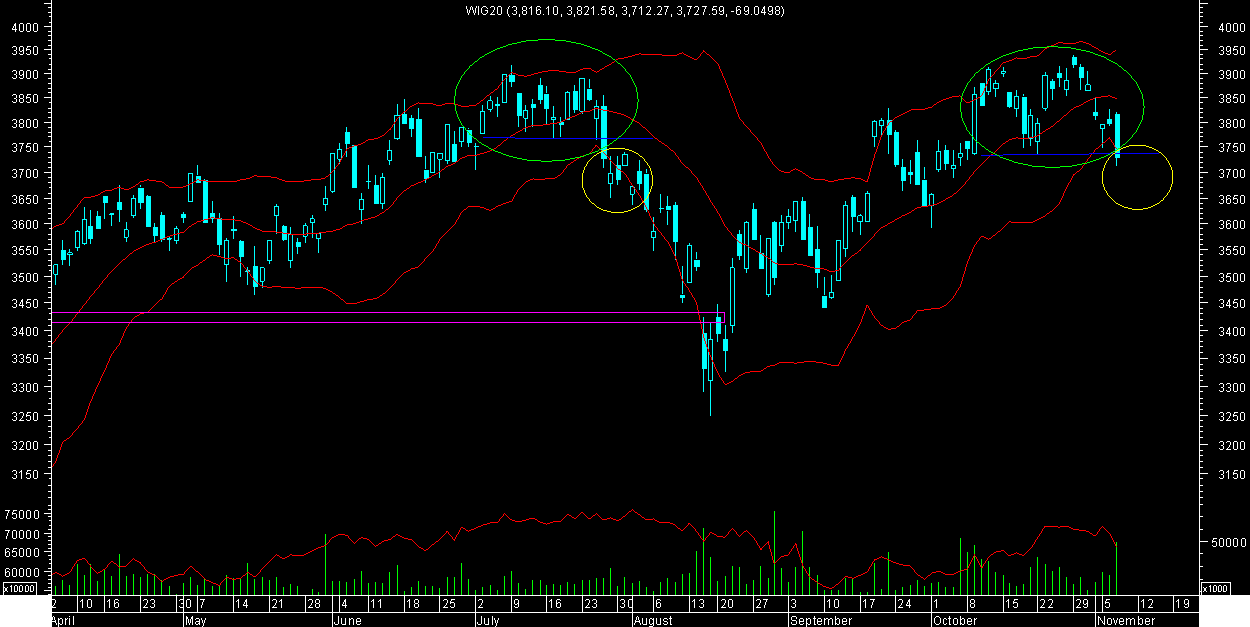 Jeżeli 3600 ma być osiągnięte 12.XI - to jutro albo pojutrze delikatna korekta spadku.