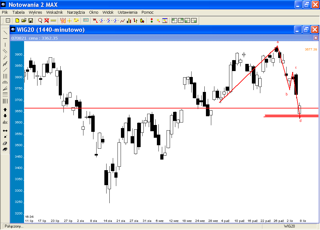 Układ XABCD widoczny na W20 jest kompletnie "rozjechany" Nie jest ani Gartleyem, ani Motylem ani Krabem. Nie masz możliwości przy tym układzie dokładnego wyznaczenia ani miejsca zajęcia pozycji ani zamknięcia stąd nie jest to formacja w rozumieniu opisywanym w literaturze.