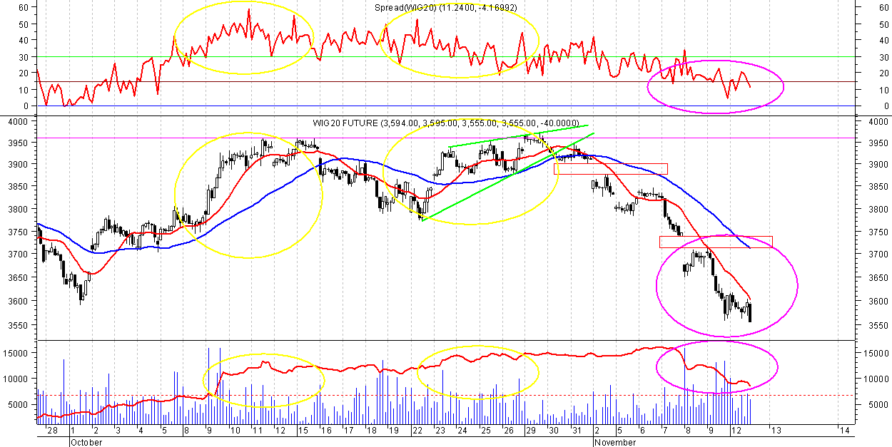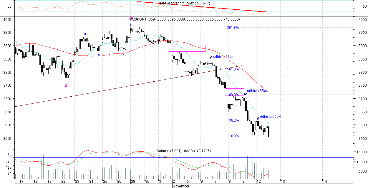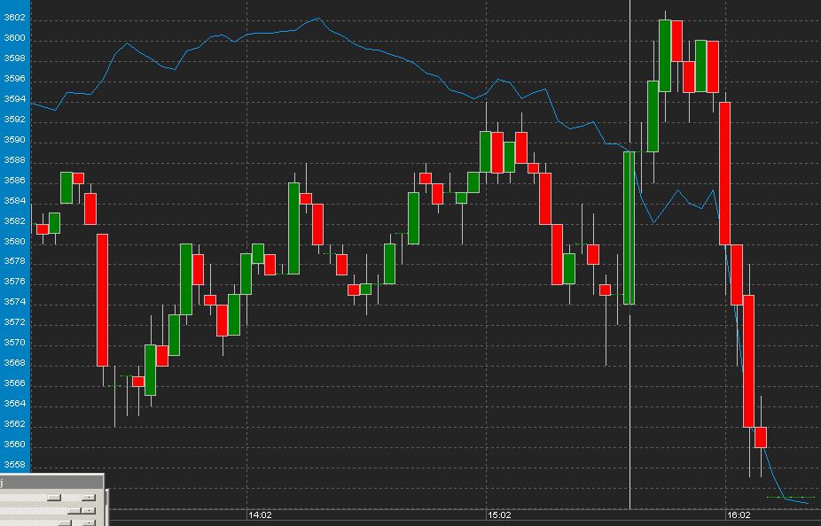 Przykład: dzisiejsza końcówka sesji, gdzie wyraźnie specjalnie ZWALONO rynek ok 50 pkt w ciągu kilkunastu minut.