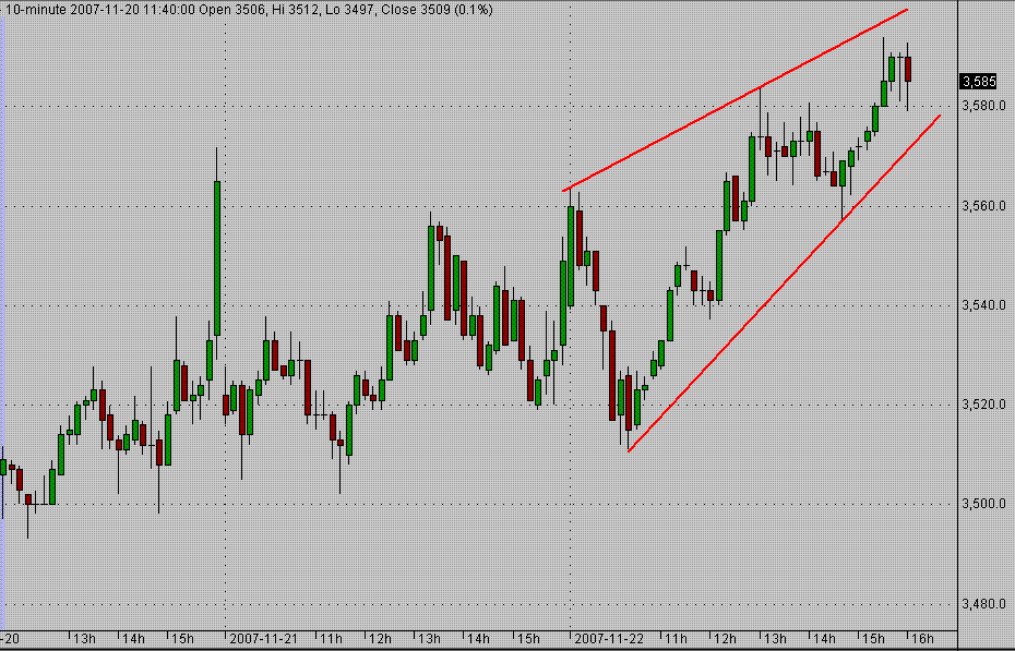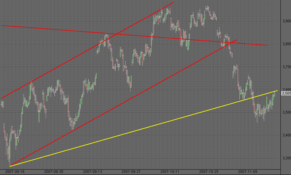 mysle ze rynek chodzi mi o futures broni sie ze wzgledu na linie poprowadzona od dolka z czerwca 2006 r i ostatnia glebsza przecene wykres wekly wykres liniowy wychodzi z niego ze obecnie walczymy na tej kresce moim zdaniem wig 20 bedzie duzo silniejszy od pozostalych a nawet uwazam ze jest szansa wejsc w tren boczny pomiedzy 3450-3650 i ztego poziomu dopiero wzrost na nowe szczyty moze wyrazniej wypowiedza sie inwestorzy uzywajacy falek czy wedlug nich jest mozliwy taki scenariusz