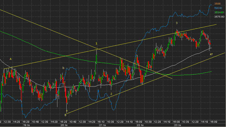 U mnie brakuje jeszcze jednej falki up , która zrobi ładną negatywną dywergencje. Najbliższe opory 3600-04b. ważne, 3616!!, 3652-58!!!