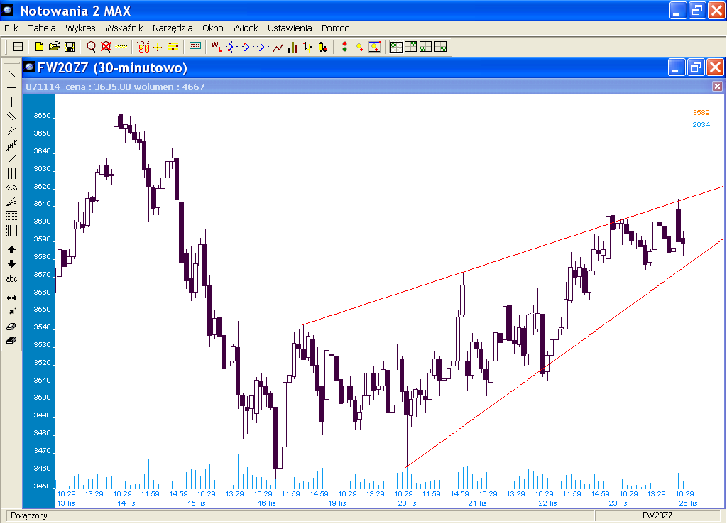 Tak to z tym falami jest policzone pomierzone a tu kupna,myślałem że siła tej przeceny będzie słabsza do porządnego wsparcia jeszcze daleko,nawet jak dziś porządnie odbijemy ten ostry zjeżdzik napędził strachu byczkom.Chyba jest to odchorowanie przynajmniej chwilowe trzymania plusów podczas gdy zachód spłyną krwią. 8-)No i jescze wkleję tego klina nieszczęsnego kierując się tradycyjną AT może się ziśćić kiedy notowania dojdą do jego podstawy :mrgreen: :mrgreen: