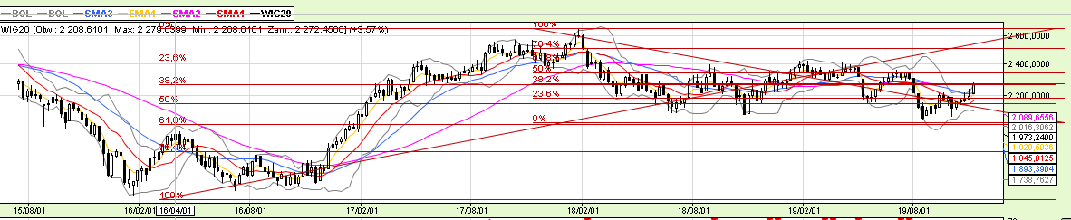 Przejście tego opornika (na co tu wszyscy liczymy) da nam prostą i jasną drogę na Złote Fibo - 2 420. W przypływie szału popytu, nawet 2 510. Potem poziomy już rzędu 3 000 - 4 000. Pewnie z PPK na czole. I 15% z OFE. I innymi socjałami Dobrej Zmiany.