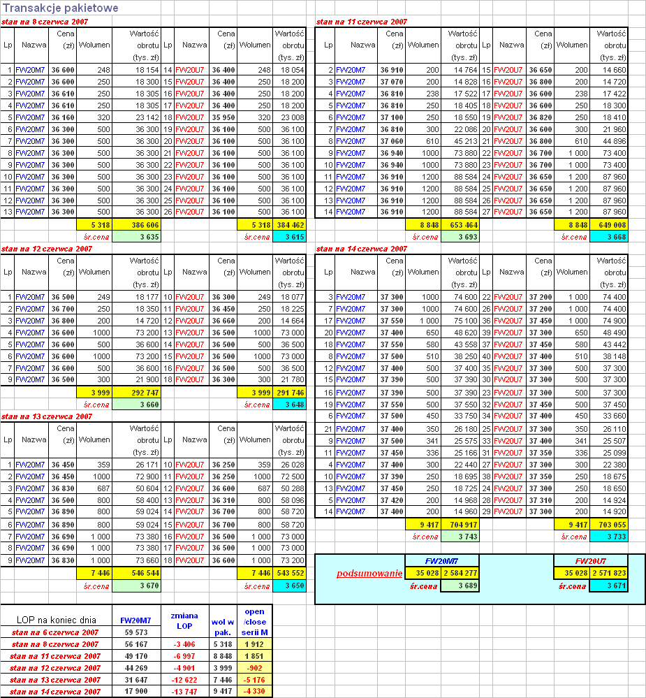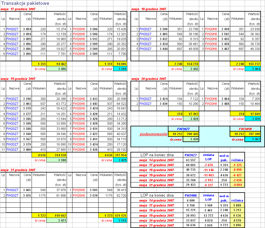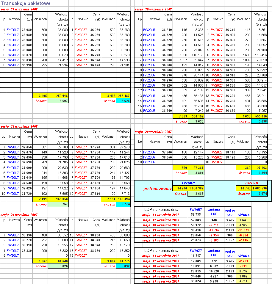 wklejam dla celow archiwalnych wykaz pakietow dotyczacych transakcji rolowania fw20 w ostatnich 3 kwartalach.
