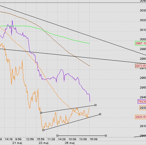 Ja się waham pomiędzy tymi scenariuszami. Bliższy jednak jestem temu, że dopełźniemy do spadkowej kreski i srrru.