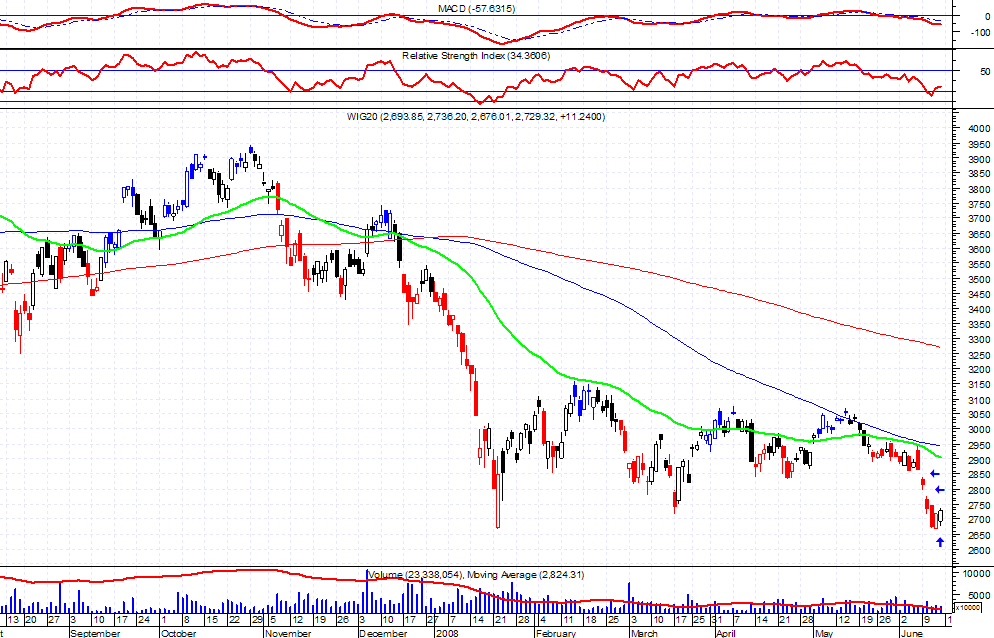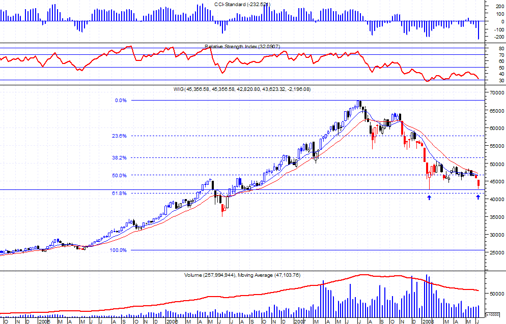co nas czeka? Posilkuje sie wykresem wigu jesli ostatnie narysowane wsparcie padnie pozostaje.............jedynie czekać końca spadków.